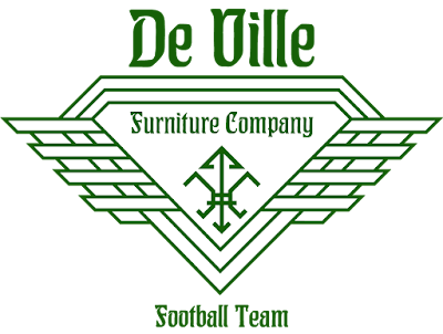 Logo: The company has an art deco-style logo that says De Ville Furniture Company. The team just adds the words “Football Team” below it.