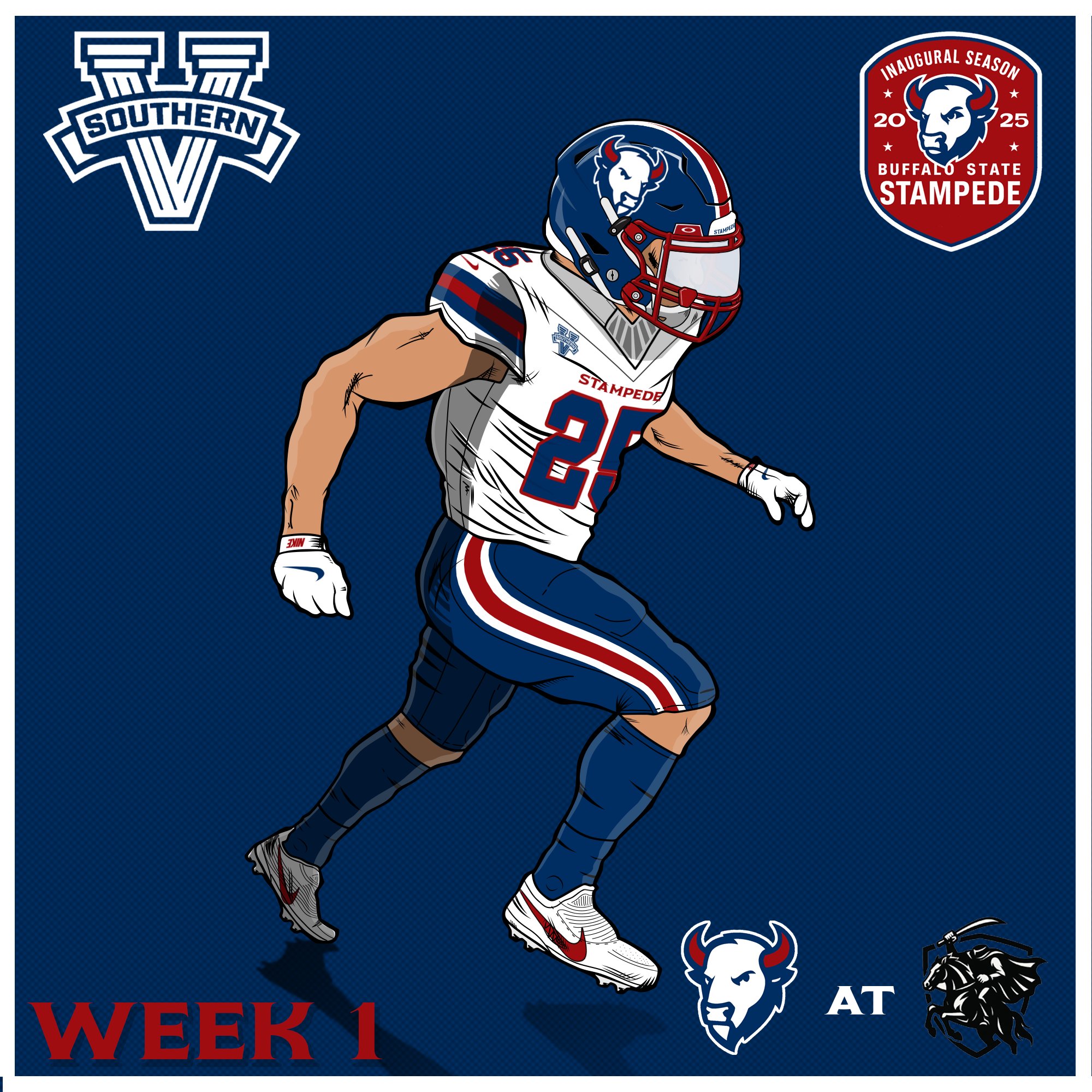 The Buffalo State Stampede are excited to kick of their inaugural season in the ALTCAA. Led by quarterback Drew Allar a young Stampede roster is looking to make a strong start against the Headless Horsemen who went 10-1 last season(sorry I can’t read).